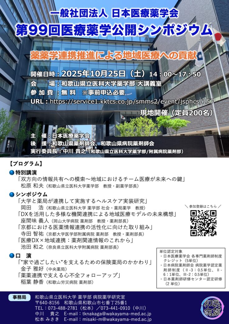 事 務 局: 和歌山県立医科大学 薬学部 病院薬学研究室